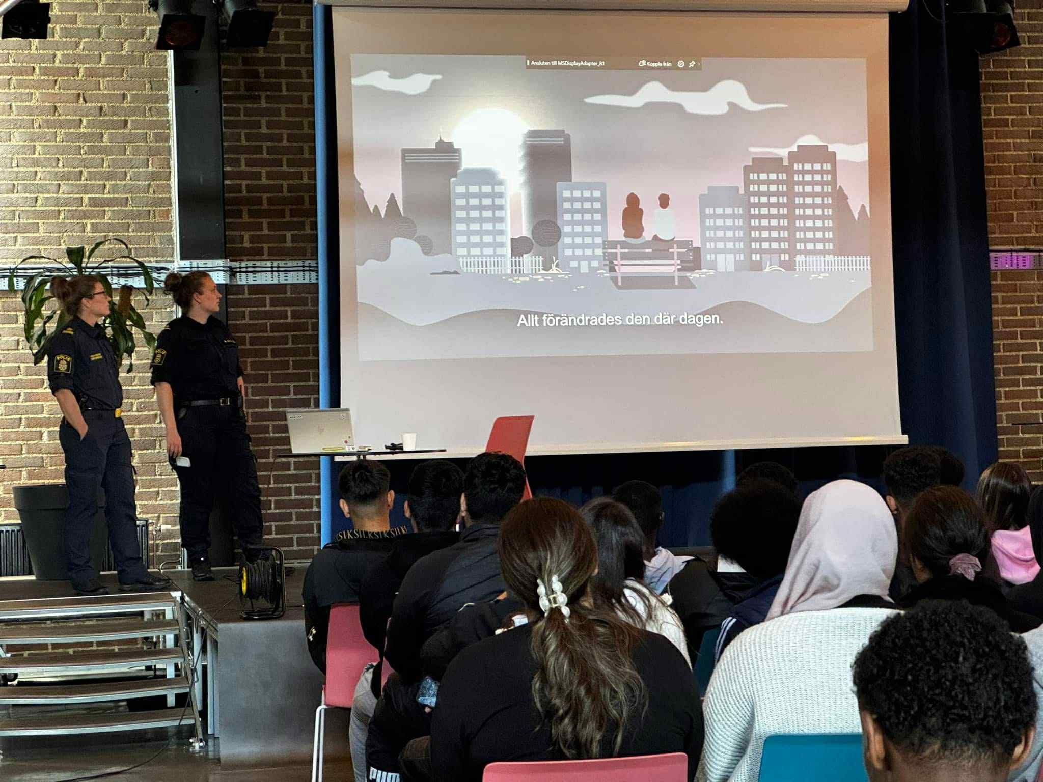 Ungdomar från Plattform Rosengård filmade och dokumenterade föreläsningen samt genomförde en intervju med kommunpolisen Malin Morän.